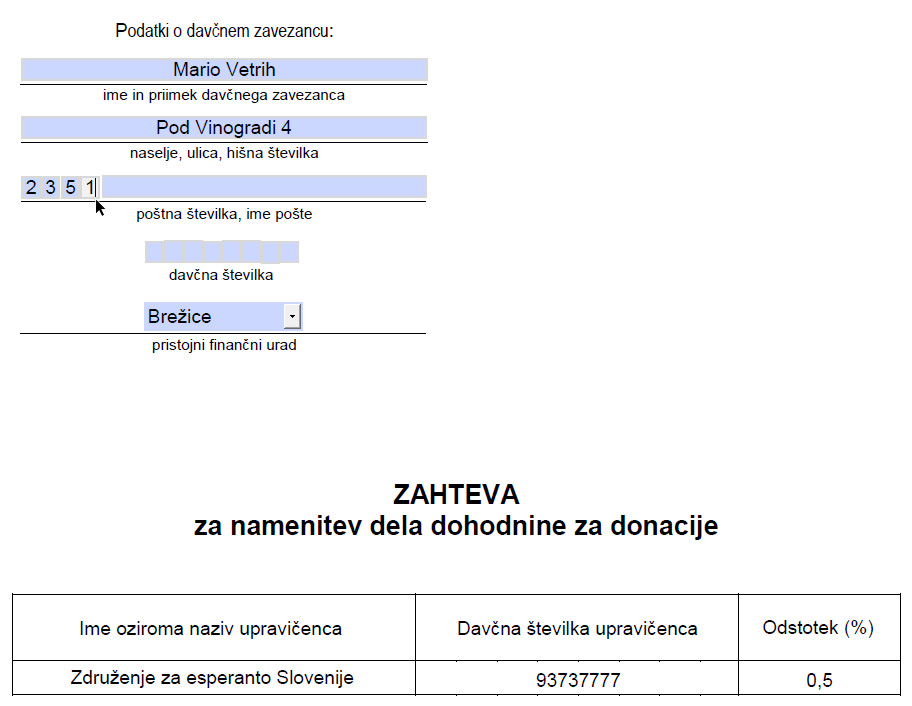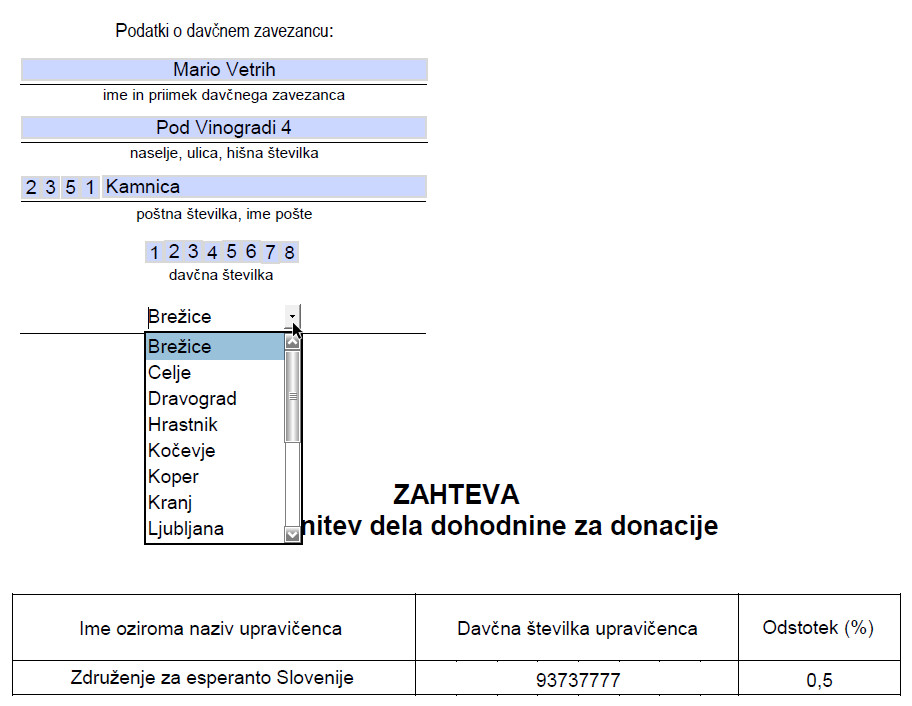 Sedaj dokument lahko natisnete, če imate tiskalnik, ter ga podpisanega pošljete na naslov pristojnega davčnega urada (klik na izbrano mesto):