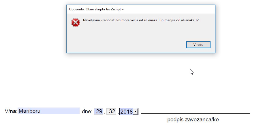 Okvirčki kjer se vnašajo številke so “zaščiteni” pred napačnim vnosom (tukaj številka za mesec 32)!