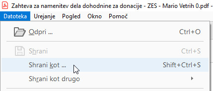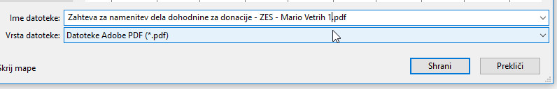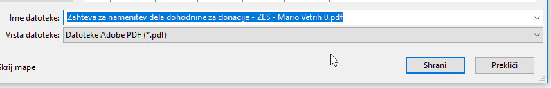 Če tiskalnika nimate, dokument shranite, predlagam, da v imenu dokumenta spremenite zadnjo številko 0 v 1. Torej dokument ‘Shranite kot’: